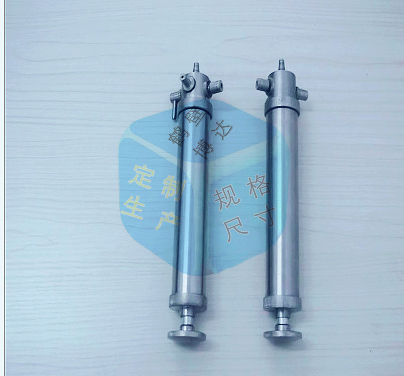 主要由三通閥門、進(jìn)氣口、出氣口、膠塞閥、拉桿、活塞、氣筒及密封圈等部件組成。