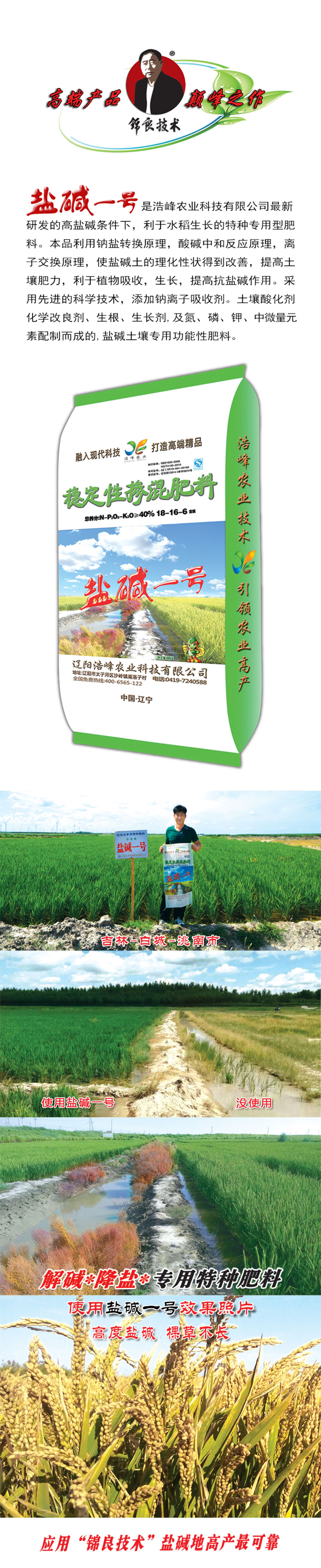 鹽堿一號(hào)是浩峰農(nóng)業(yè)科技有限公司最新研發(fā)的高鹽堿條件下,利于水稻生長(zhǎng)的特種專用型肥料。本品利用鈉鹽轉(zhuǎn)換原理,酸堿中和反應(yīng)原理,離子交換原理,使鹽堿土的理化性狀得到改善,提高土壤肥力,利于植物吸收,生長(zhǎng),提高抗鹽堿作用。采用先進(jìn)的科學(xué)技術(shù),添加鈉離子吸?。土壤藥F粱Ц牧技痢⑸?、生长?,及氮、磷、鉀、中微量元素配制而成的,鹽堿土壤專用功能性肥料。